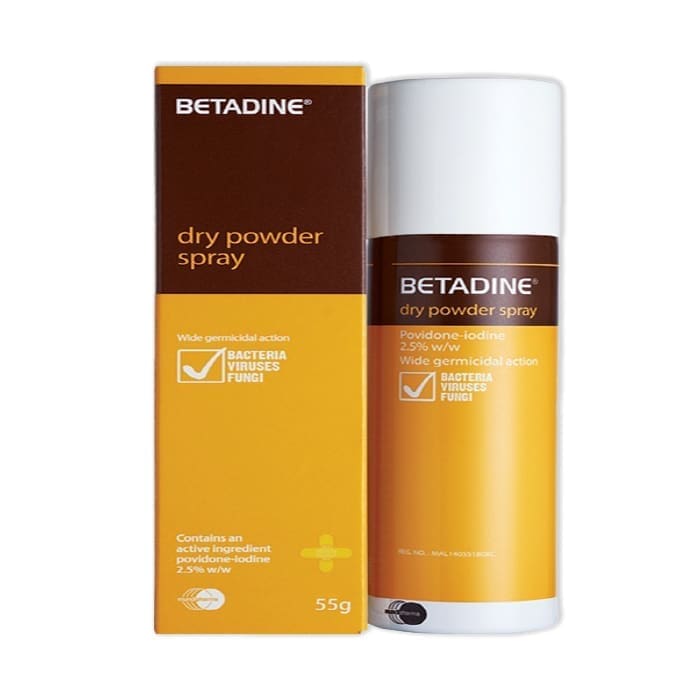 بيتادين بخاخ بودرة جافة (55 جم) يحتوي على بوفيدون-يود لتوفير حماية مطهرة واسعة النطاق. مناسب للجروح والخدوش والوقاية من العدوى.